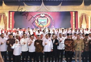 Selain itu juga hadir Kepala BP BUMN yang juga merupakan COO Danantara, Dony Oskaria, bersama para bupati dan wali kota se-Sumbar serta jajaran pengurus DPW, DPD, dan DPC IKM dari seluruh Indonesia.