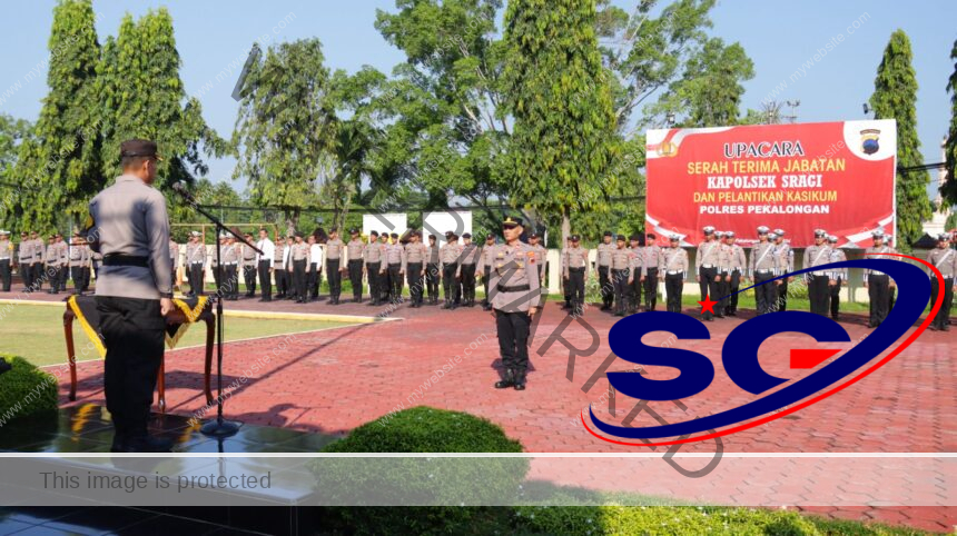 Polres Pekalongan, Polda Jateng, Sinyalgonews.com – Kapolres Pekalongan AKBP Wahyu Rohadi, S.I.K., M.H. memimpin Upacara Serah Terima Jabatan Kapolsek Sragi dan Pelantikan Kasikum Polres Pekalongan yang digelar di halaman Mapolres, Senin (22/04). Hadir dalam upacara sertijab ini diantaranya Wakapolres Pekalongan Kholid Mawardi, S.H., M.H., para pejabat utama Polres Pekalongan, Kapolsek dan jajaran perwira Polres Pekalongan, Danramil Sragi, Camat Sragi dan juga Ketua Bhayangkari Cabang Pekalongan beserta pengurus.