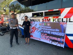 “Kegiatan ini merupakan bagian dari rangkaian peringatan HUT Bhayangkara ke-79, dengan harapan dapat memberikan kemudahan dan kenyamanan bagi masyarakat dalam mengurus perpanjangan SIM, sekaligus sebagai bentuk nyata pelayanan Polri yang humanis,” ujar Kasat.